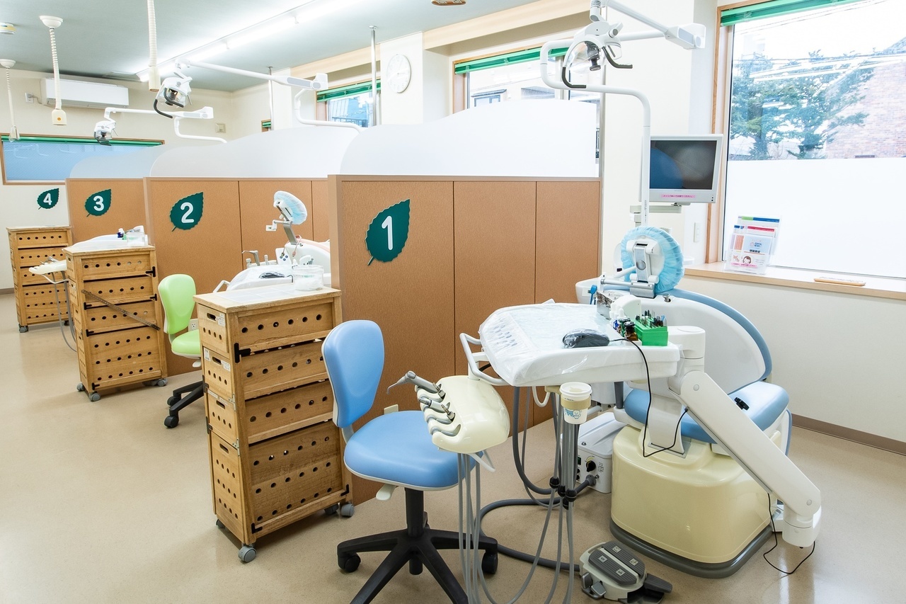 パーテーションのある半個室タイプの診療台で、プライバシーに配慮しています。